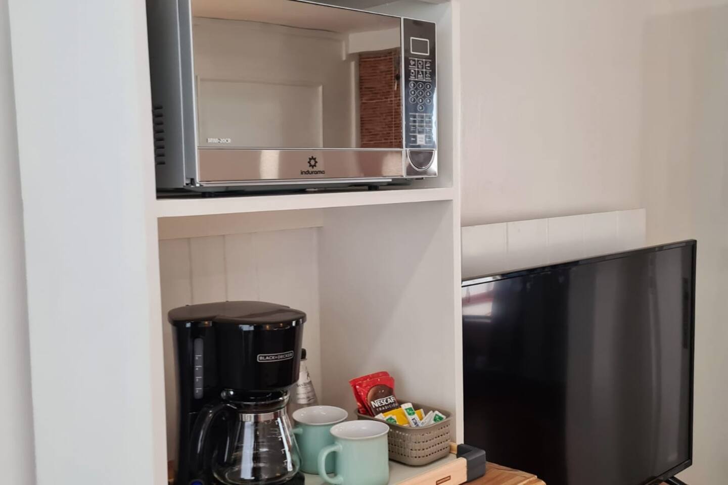 – Microondas, refrigeradora, cafetera